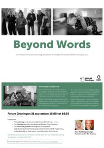 We vertonen de documentaire Beyond Words, gepaard met een live optreden van ensemble- leden en een gesprek met zorgprofessionals, deskundigen, kunstenaars en publiek.
