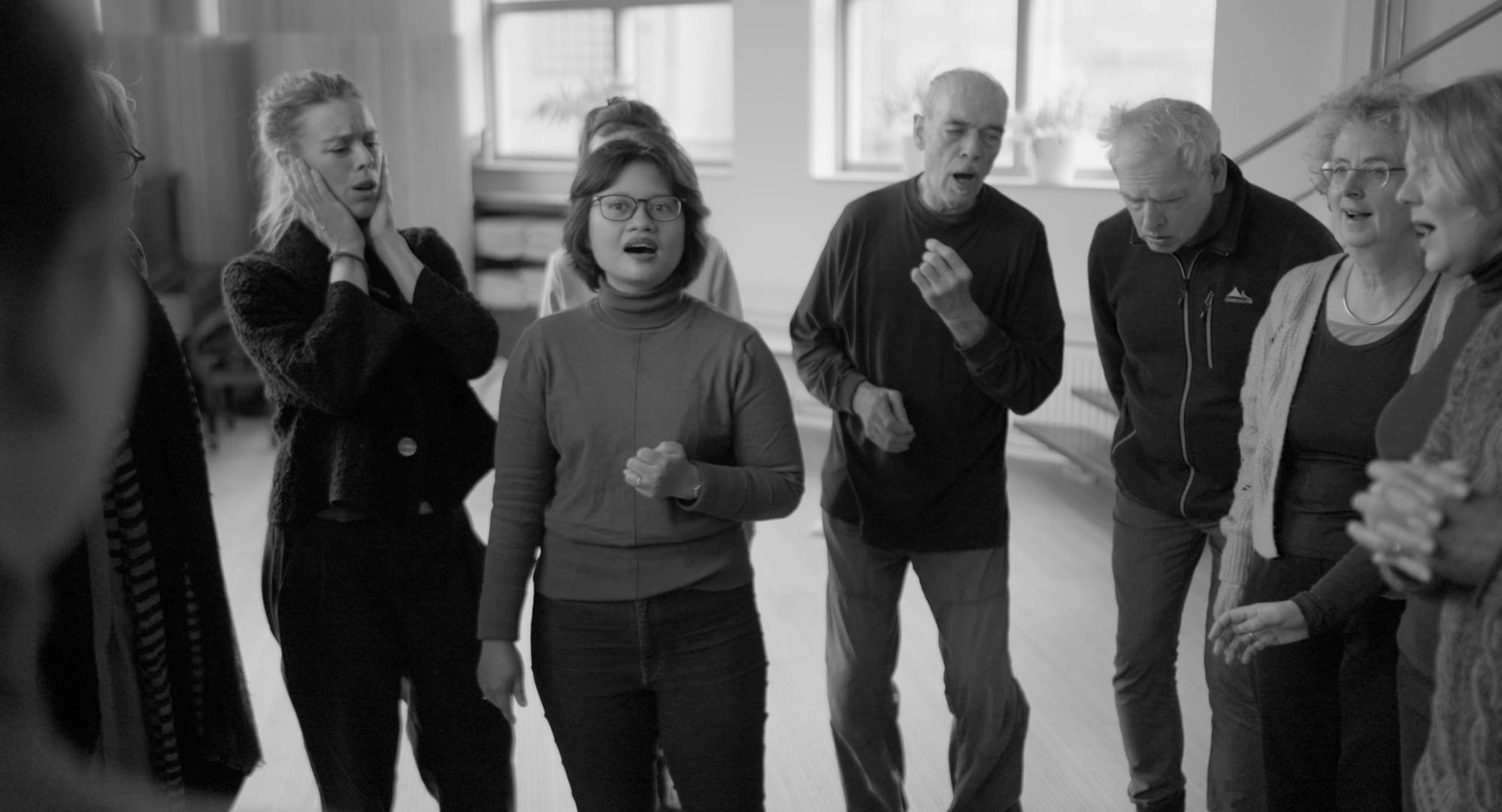 Hoe kunnen we betekenisvol contact maken als we niet meer met taal kunnen communiceren? In de korte documentaire Beyond Words wordt de kijker meegenomen naar een wereld waar taal plaatsmaakt voor geïmproviseerd geluid. De zangers van het Genetic Choir Ensemble bezoeken verpleeghuizen en zoeken de interactie met demente bewoners. De zangers stellen zich open voor de soms zeer kwetsbare bewoners. Door te luisteren en te improviseren met geluid, ritme, aanraking en melodie proberen de zangers contact te maken met de ouderen. Momenten van melancholie en blijdschap gaan hand in hand in deze korte zwart- wit documentaire die laat zien wat zingen kan doen als andere vormen van communicatie niet meer lukken.